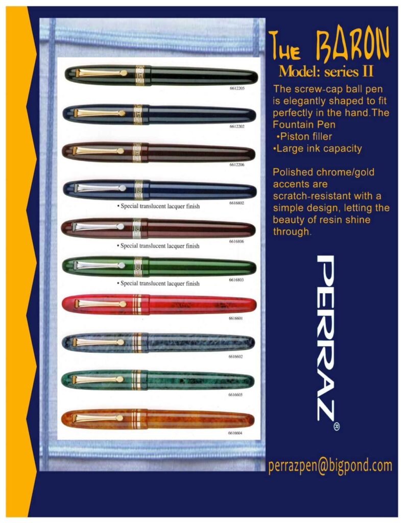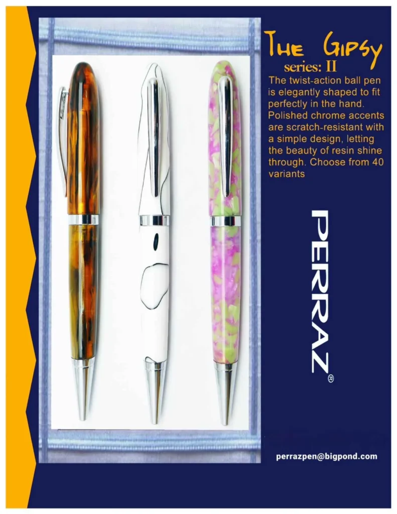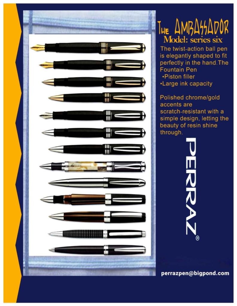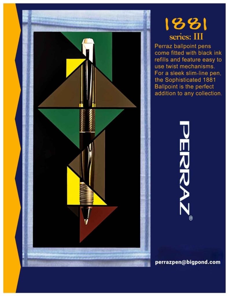 Since Day One, the firm has been under the direct and creative supervision of Emmanouel Perris (founder of Perraz). Together with his professional colleague, Michael Hsu, they have undertaken research and development in the design and manufacture of writing instruments since 1987. Emmanouel’s latest designs, PERRAZ, allow an individual the choice of totally different styles in writing instruments.